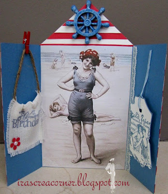 BeantwoordenVerwijderenLove how the gatefold makes the bathhouse - brilliant! And what a cute bathing beauty... Absolutely wonderful summer birthday card!